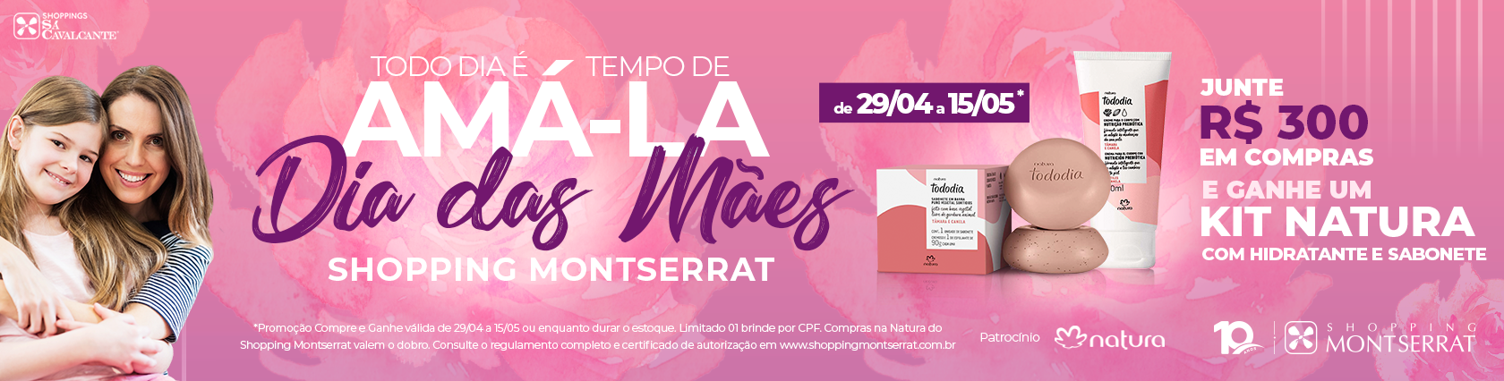 R$150,00 na loja Natura do Shopping Montserrat, você já terá direito ao seu